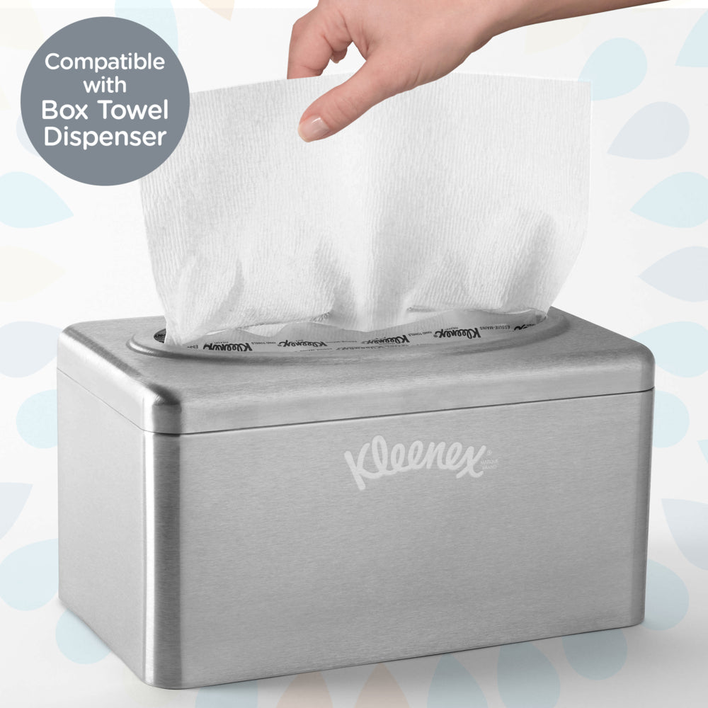 Kleenex® Ultra Soft Hand Towels in a Pop-Up Box is a convenient and hygienic countertop towel solution for restrooms. These ultra-soft towels are made of highly absorbent virgin fibers and offer an exceptional hand-drying experience. The pop-up box dispenses one hygienic paper towel at a time, with a water-resistant coating and poly-shield to prevent wetness. The countertop box is recyclable and fits Kimberly-Clark Professional™ dispensers in various sleek styles. Ideal for offices, lodging, or any facility that prefers convenient countertop dispensing and a high-end guest experience, this solution offers a high-end experience for guests.