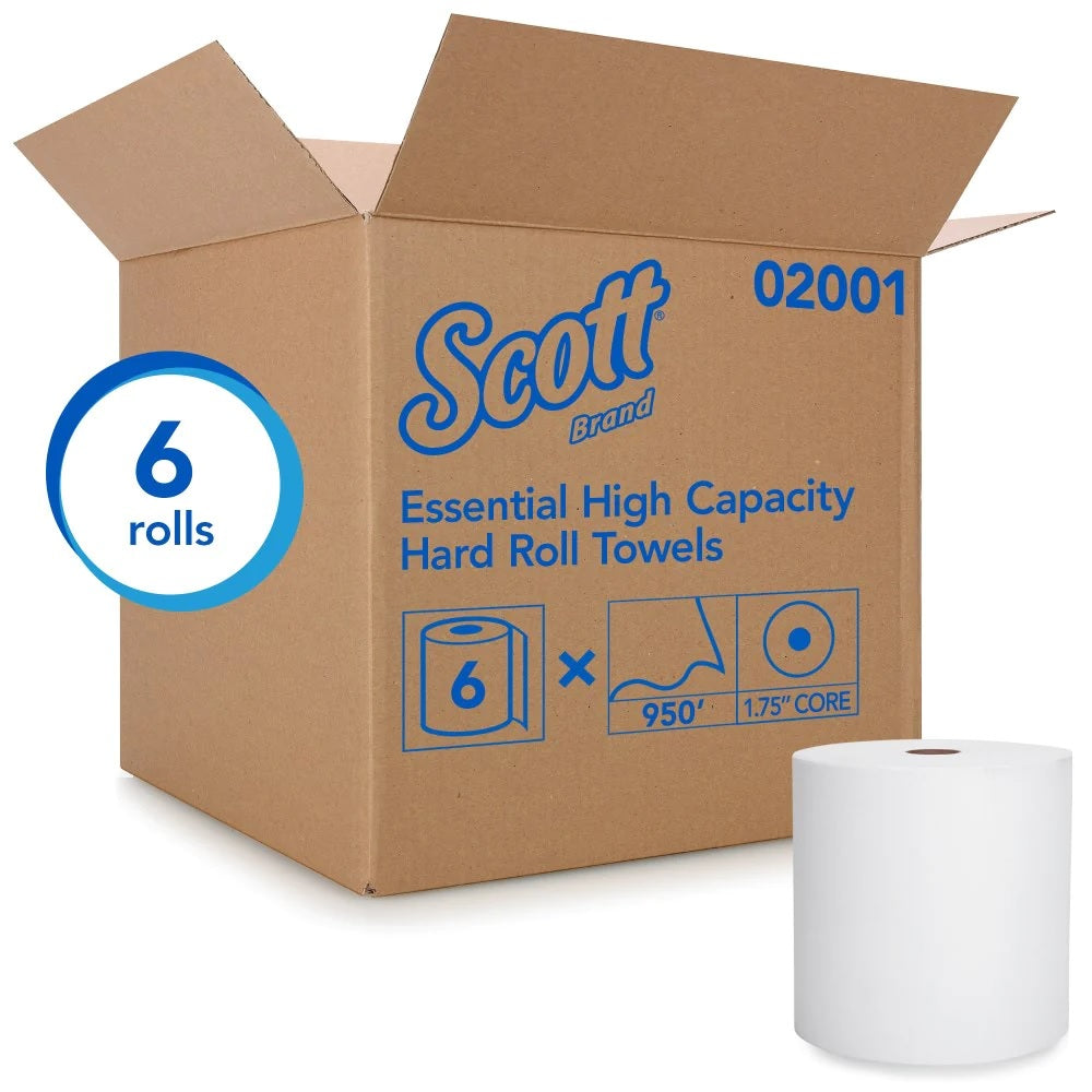 Scott® Essential High Capacity Proprietary System Hard Roll Towels, White, 905' Sheets, 6 Rolls, 02001