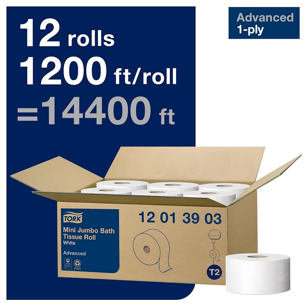 Tork® Advanced Mini Jumbo Bath Tissue Roll, 1-Ply, 12 Rolls/Case, 12013903