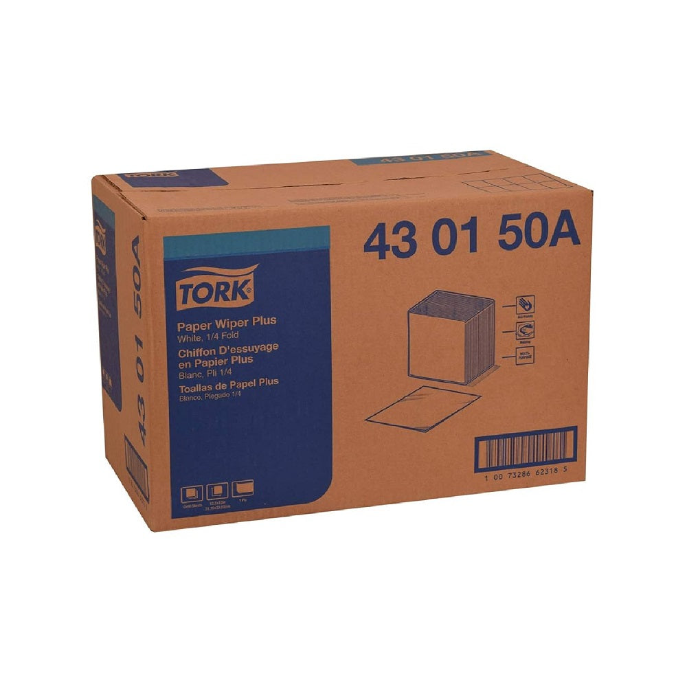 Tork Paper Wiper Plus is a versatile paper towel ideal for hand wiping and liquid cleanup. Its 1/4 fold format ensures efficient dispensing and maximizes use of the entire wiper, making it a practical choice for various cleaning tasks in professional settings.
