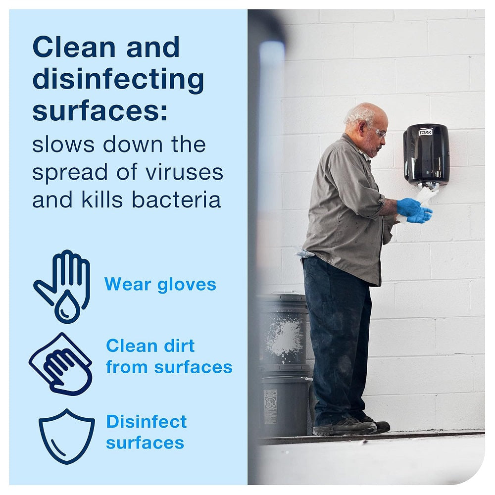 The Tork Cleaning Cloth is a soft, flexible, and strong multipurpose solution ideal for light cleaning tasks. It efficiently absorbs oils and liquids to simplify cleaning. Compatible with Tork Floor and Wall Stand dispensers or the Maxi Centerfeed and Boxed Combi Roll Dispensers for safe, reliable, and one-handed dispensing.